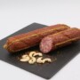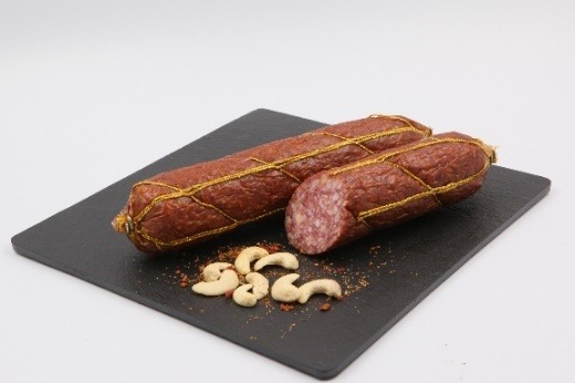 Bestanddeler (ingredienser): speket svinekjøtt, CASHEWNØTTER, salt, krydderier, sukkerarter, startkultur, konserveringsmiddel E250. Kan inneholde spor av SENNEP, SELLERI, SESAM, MELK og SOYA.