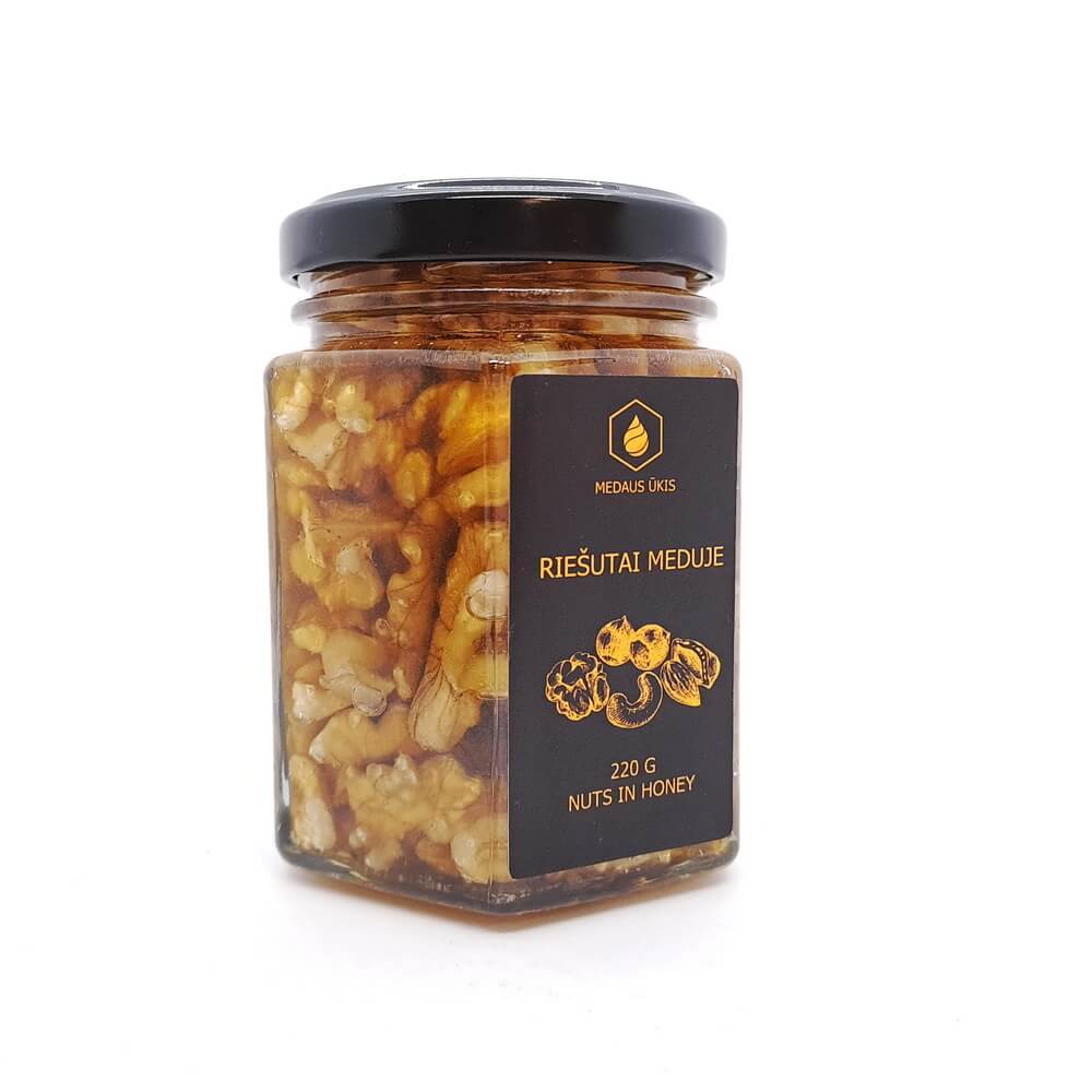 Ingredienser Honning 64 % Valnøtter 36 % Oppbevares tørt, ikke i direkte sollys Produsent: Eimantas Matelis Butėnų g 18 Butėnai Svėdasų sen. 18 Anyksščių raj. Energiverdi kJ/kcal……….2066,6/495,0 Fett: …………………30,6 Herav mettet fett: 2,8 Karbohydrater: ……….46,8 Herav sukkerarter: ……….43,7 Fiber:. 2,0 Protein: ……….,2 Salt: 020,0
